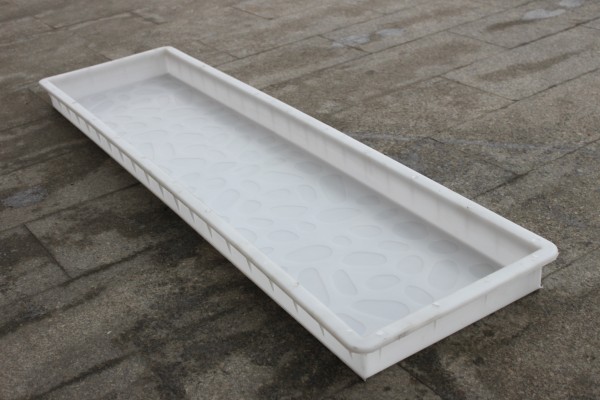 長(zhǎng)條高速蓋板模具主要設(shè)計(jì)結(jié)構(gòu)為鵝卵石凹凸印制,模具側(cè)部分別添加加強(qiáng)筋以保證不易變形及水泥制品脫模次數(shù)。在實(shí)際水泥制品生產(chǎn)過程中,填料,干透,再使用水泥基建設(shè)專用震動(dòng)平臺(tái)脫模,高速蓋板成品鵝卵石凹凸有致,減少路面防滑等產(chǎn)生不必要的危險(xiǎn)因素。根據(jù)高速蓋板模具的實(shí)際尺寸,在水泥蓋板澆筑過程中,亦可適當(dāng)添加一些鍍銅鋼纖維來增加高速蓋板的整體結(jié)構(gòu)牢固度。